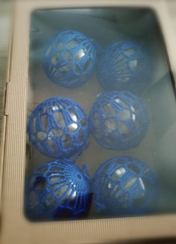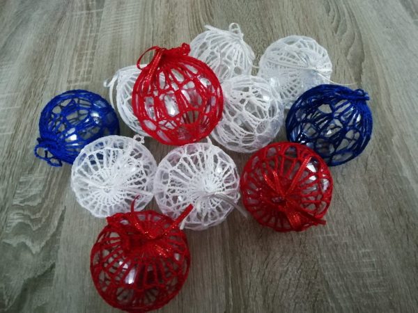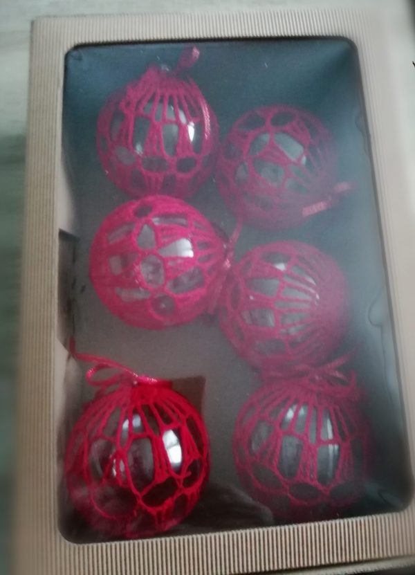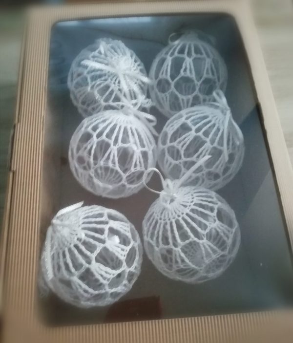 Ponúkame na predaj vianočné gule, sú to obháčkované plastové gule, veľkosť 8cm, predávajú sa po 6 ks v balení. Zabalené sú v darčekovej bielej krabici s okienkom, v ktorej si ich môžete bezpečne uschovať, aby ste ich mali na Vianoce vždy poruke. Naši zamestnanci ich vyrobili z láskou pre Váš. Farba biela, modrá, červená, podľa objednávky sa dá upraviť.