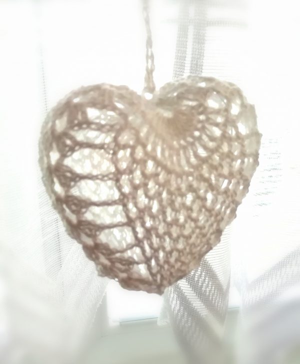 Háčkované srdce – vianočná ozdoba na zavesenie, výška 10 cm, plastikové srdce obháčkované bielou niťou. Predáva sa ako sada 6 ks v darčekovom balení, v ktorom si ho môžete uschovať na ďalšie použitie. Vyrobené z láskou pre Vás 😊