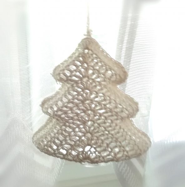 Háčkovaný stromček – vianočná ozdoba na zavesenie, výška 11 cm, plastikový stromček obháčkovaný bielou niťou. Predáva sa ako sada 6 ks v darčekovom balení, v ktorom si ho môžete uschovať na ďalšie použitie. Vyrobené z láskou pre Vás 😊